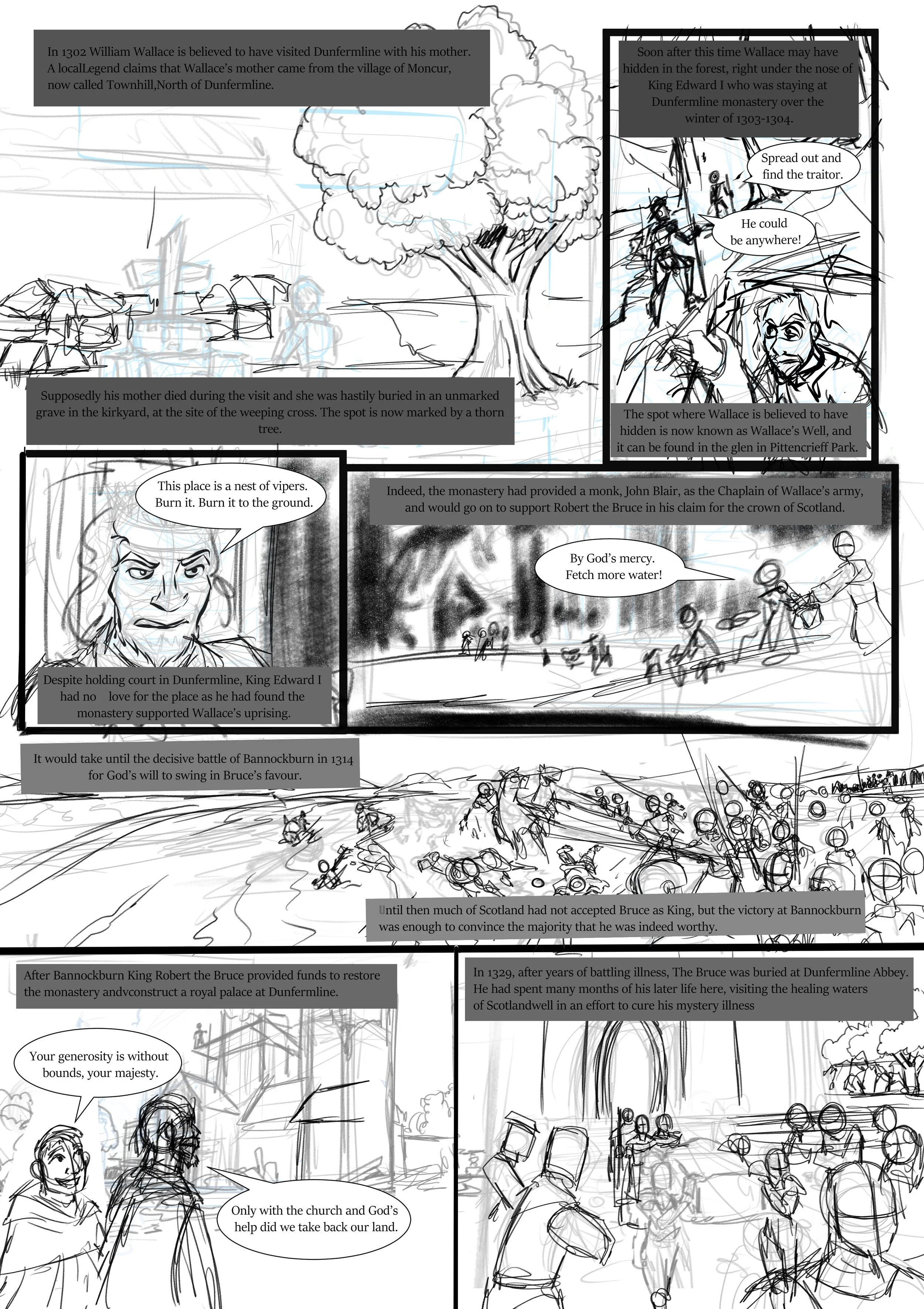 I was excited to illustrate a page for Colin Maxwell’s Dunfermline story collection. It was great to redraw Robert the Bruce and William Wallace again since my Battle of Bannockburn comic with Maximized Comics.